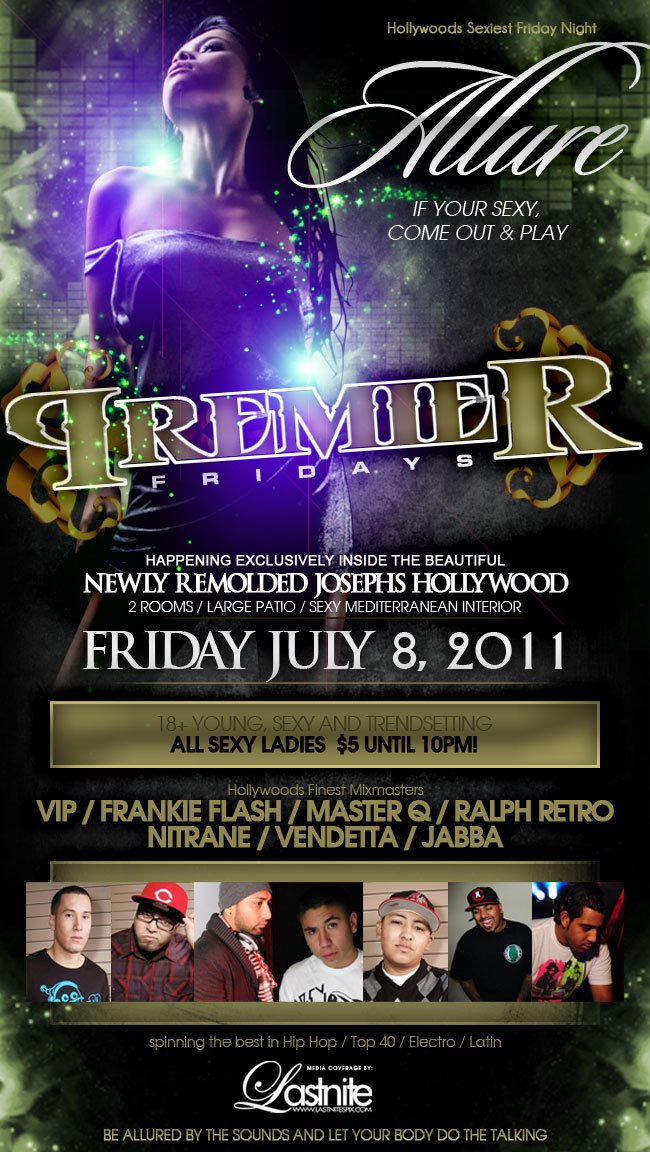 > PREMIER Fridays inside JOSEPHS is Hollywoods newest sensation! A night dedicated to providing a new scene for the young, sexy, trendsetting college crowd! It is the only 18+ Friday night party happening in Hollywood! Over 600+ of LA’s finest converge to start the weekend and enjoy the nightlife and its highest peak! PREMIER Fridays at JOSEPHS cultivates a sophisticated and high energy ambiance! Its about Status and being PREMIER!