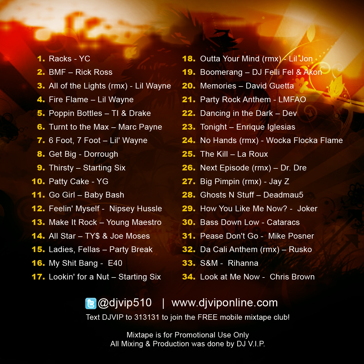 The “Summer Jumpoff Mixtape” is here!  Featuring some hot music from YC, Rick Ross, Kanye West, Lil Wayne, TI, Drake, Marc Payne, Dorrough, Starting Six, YG, Baby Bash, Nipsey Hussle, Young Maestro, TY$, E40, Lil Jon, DJ Felli Fel, Akon, David Guetta, LMAFO, Dev, Enrique Iglesias, Wocka Flocka Flame, La Roux, Dr. Dre, Jay Z, Deadmau5, Joker, Cataracs, Mike Posner, Rusko, Rihanna & Chris Brown to keep your Summer poppin!