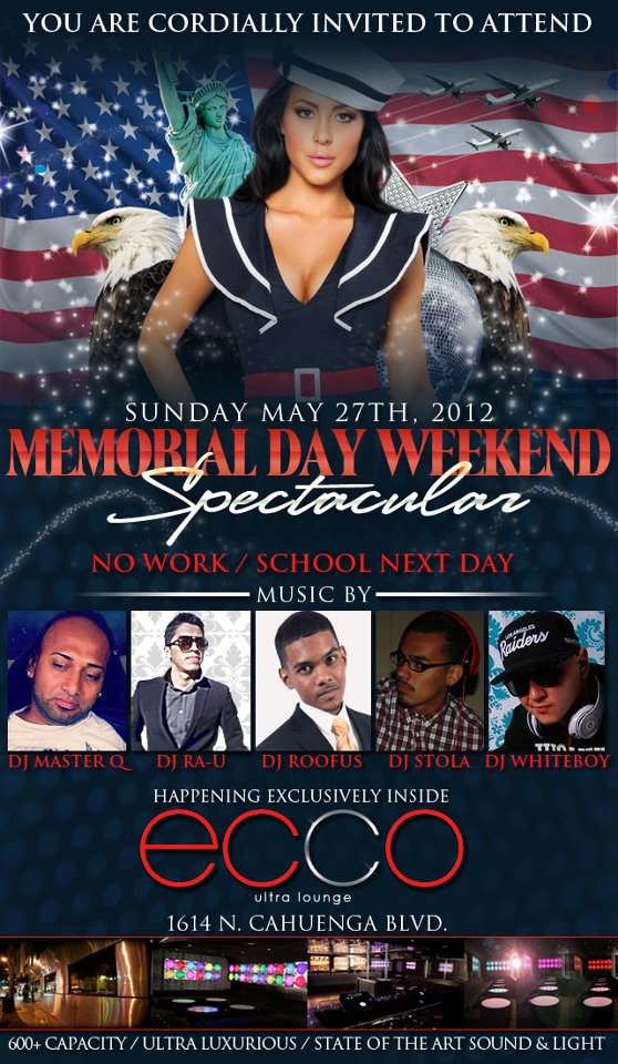 Memorial Day Weekend is the start of the 2012 summer – come kick it off in exciting fashion as we welcome southern californias sexiest college party goers to a luxurious environment with fantastic sounds for one unbelievably SPECTACULAR Night!!